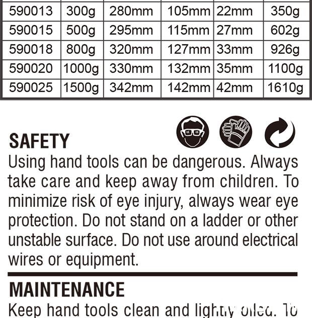 *Forged fine grain steel head hardened, tempered. HRC>48