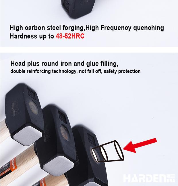 *Forged fine grain steel head hardened, tempered. HRC>48